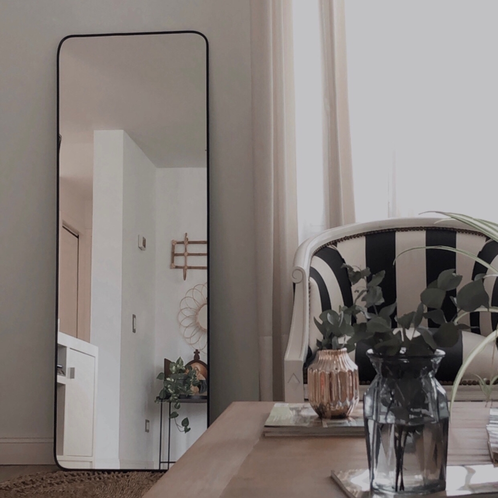 Espejo rectangular punta redondeada en marco PVC
